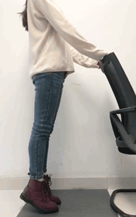 1、双手平放站立(要有扶手支撑)。 慢慢使你的脚跟离开地板并维持1秒左右。
