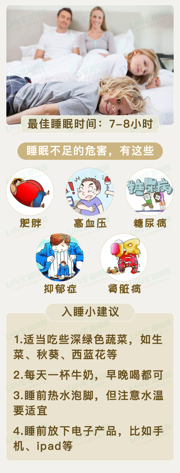 睡眠时间不足7小时的肾友,肾功能下降速度更快。