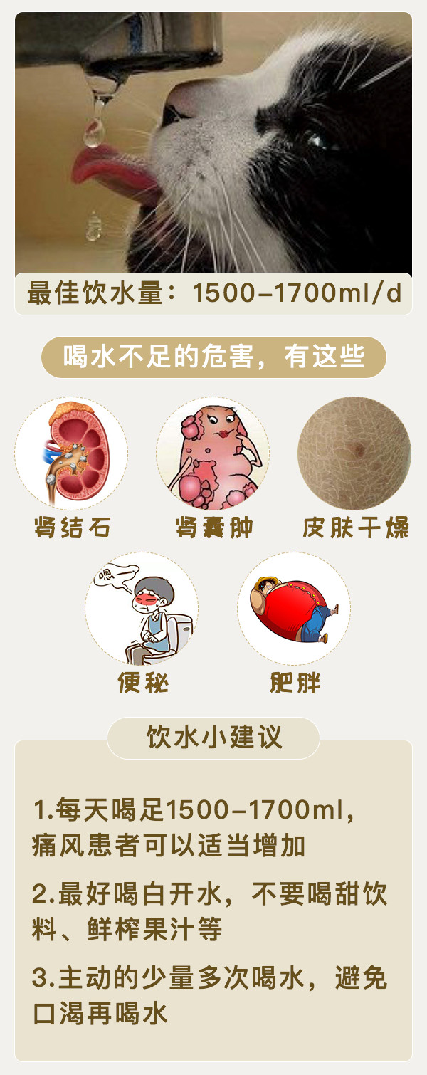 喝水不足会促进肾结石、肾囊肿的进展,严重缺水还可能导致肾脏血流不足,出现急性肾衰竭。