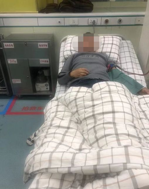去年透析过程中,徐进世有一次惊险的经历,抽筋,肌肉紧缩,在床上翻来覆去翻滚,大汗淋漓,直到失去意识。把旁边的病人和医生全部吓坏了,赶紧做人工呼吸,医生及时给他回水才缓过来。