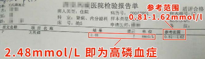 血磷,即血液中的无机磷,正常范围在0.81-1.62mmol/l,当血磷检测高于1.62mmol/l时,即为高磷血症。高血磷会导致肾友发生皮肤瘙痒、甲旁亢或血管钙化,甚至致残或死亡。