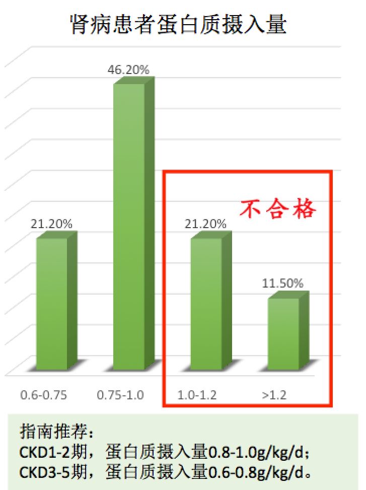 至少1/3的患者,蛋白质摄入量超过指南推荐的摄入量。