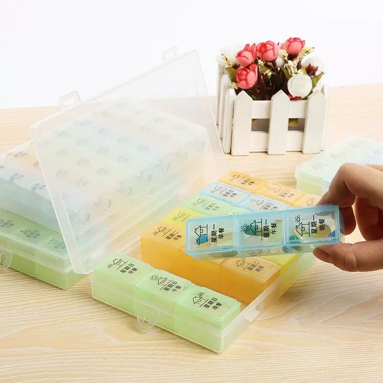 2.应用摆放药品的药盒。建议使用颜色鲜艳些的药盒,早上起来习惯性的将一天的药全部摆好,如病情稳定,也可将一周的药摆好;
