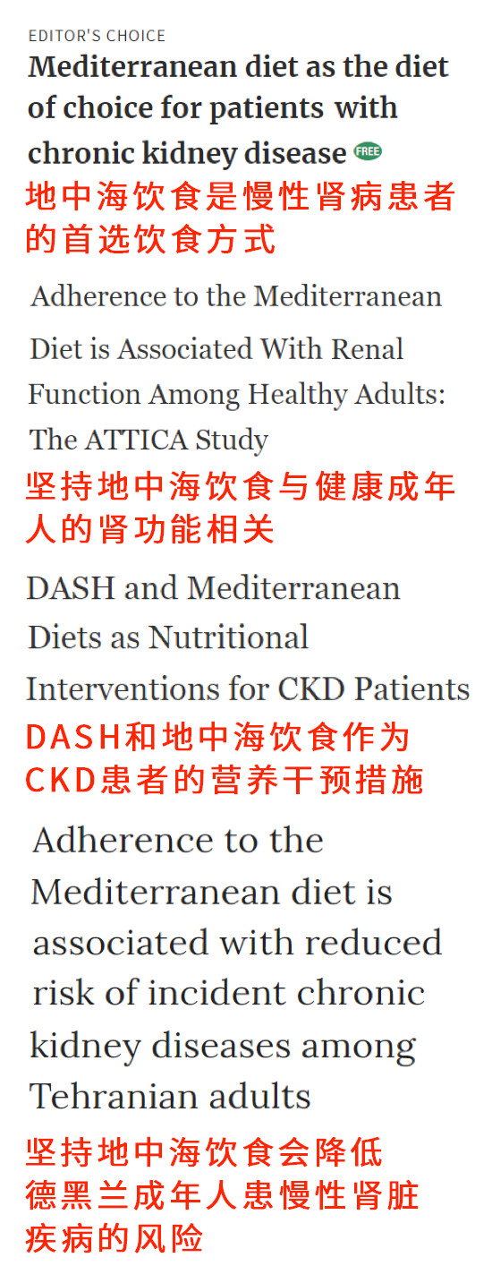 1.地中海饮食更适合早期慢性肾脏病患者(1-3期);