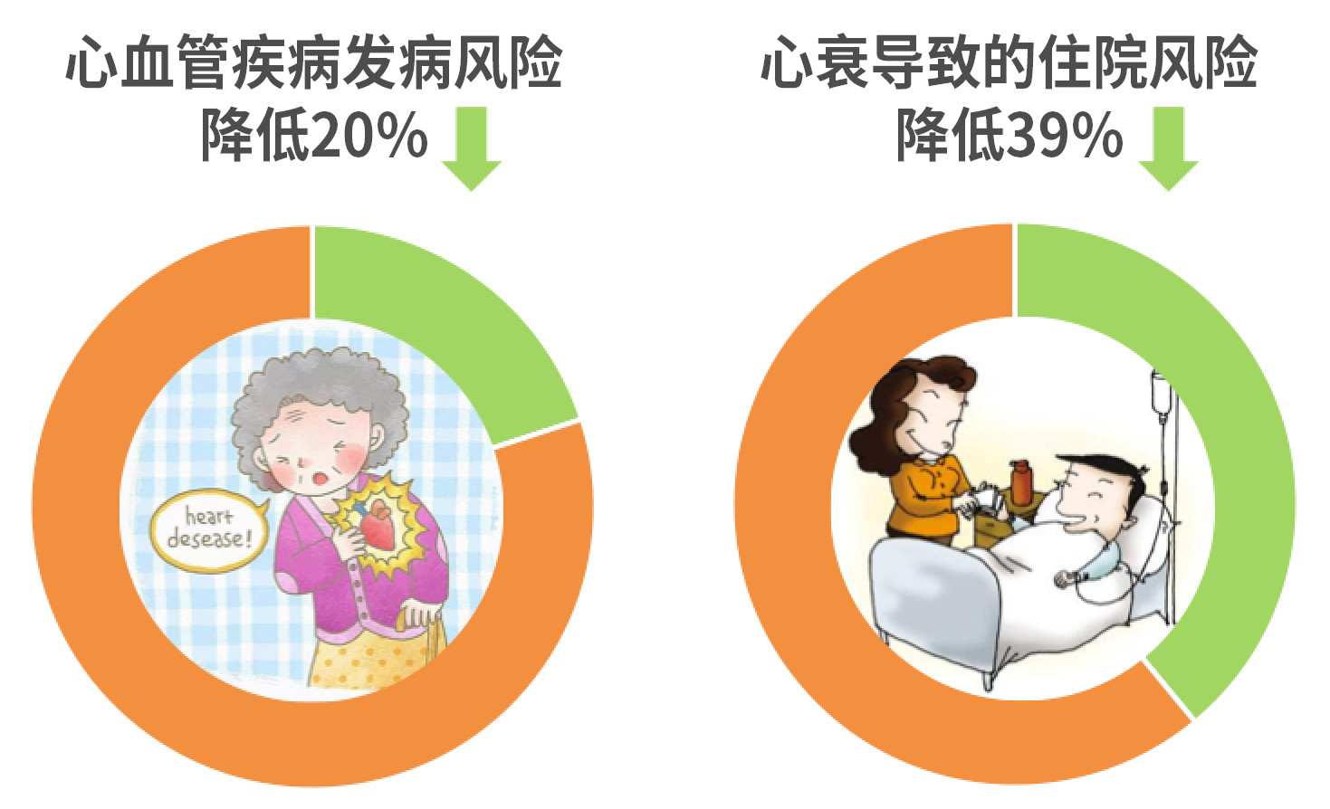 同时,卡格列净还可以减少患者心血管疾病的发病风险,心衰导致的住院风险,以及心血管导致的死亡风险。