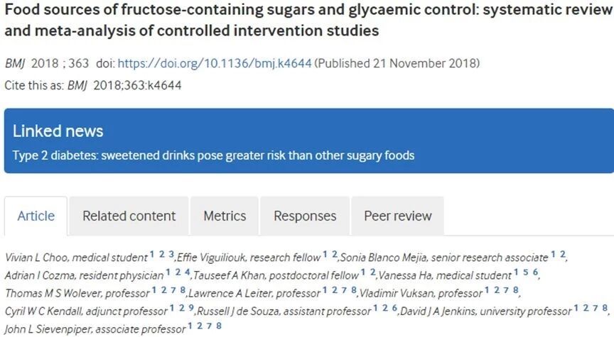 加拿大多伦多大学和圣迈克尔医院等机构的研究者发现,含糖饮料比其他含果糖食物更易促进2型糖尿病的形成。