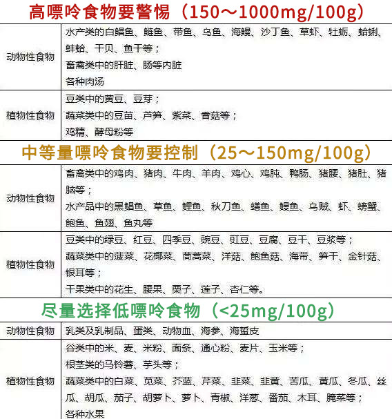 营养学上,根据食物嘌呤含量不同,分为三类: