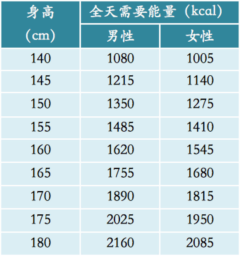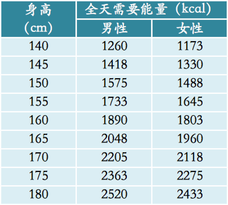 最后附上不同身高肾友需要的能量(表1/2),和常见食物所含的能量(表3)。