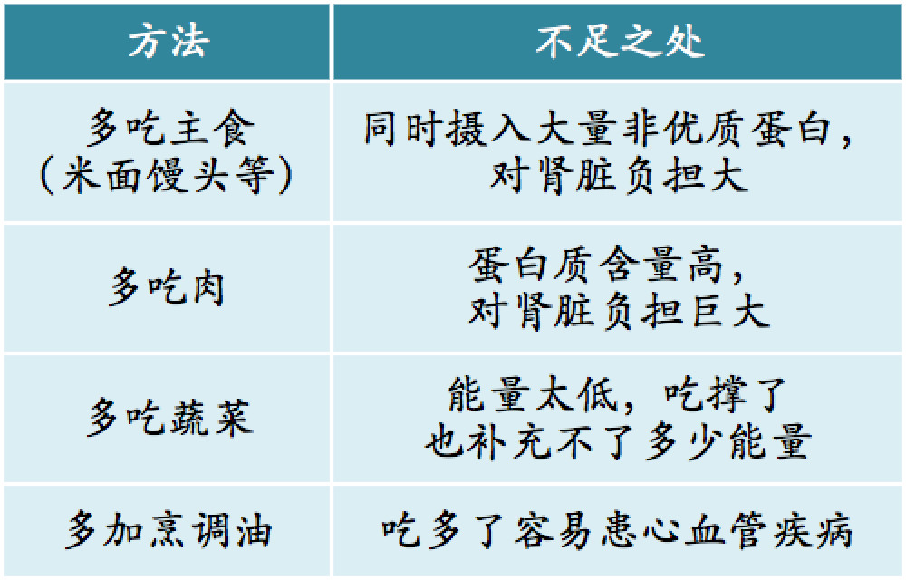 首选方法,就是增加能量。通常的方法有4种,但都不适合肾友。