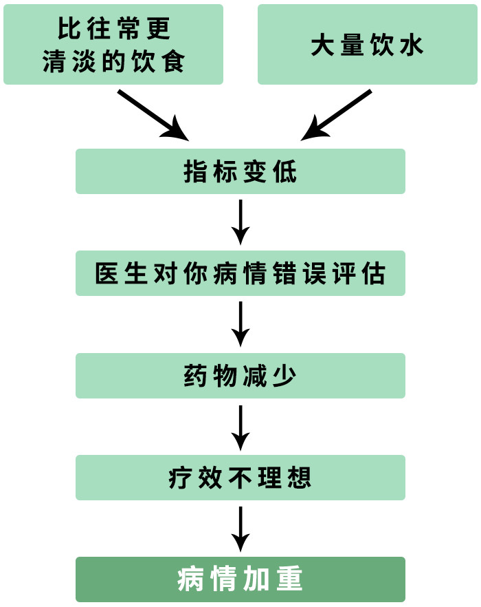 相比于往常更清淡的饮食,则可以让某些检查结果出现较低的假象,无法反映身体真实的情况,进而影响医生对病情的判断,以及用药的剂量。