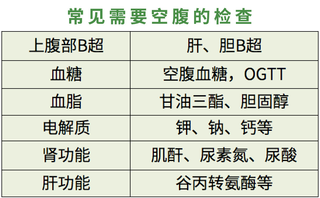 需要额外提醒的是,某些检查需要在空腹状态下进行。
