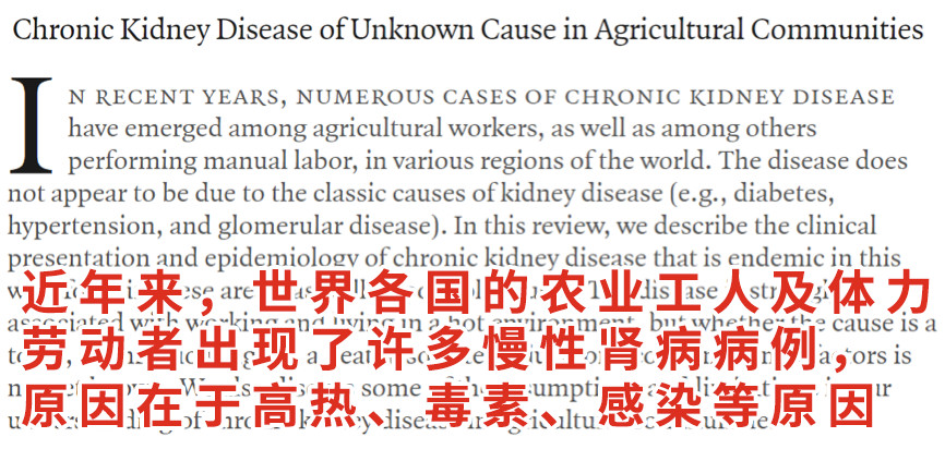 随后,研究人员发现,从事农业和体力劳动的人群,由于高温、毒素和感染等因素影响,慢性肾脏病的患病率增加。