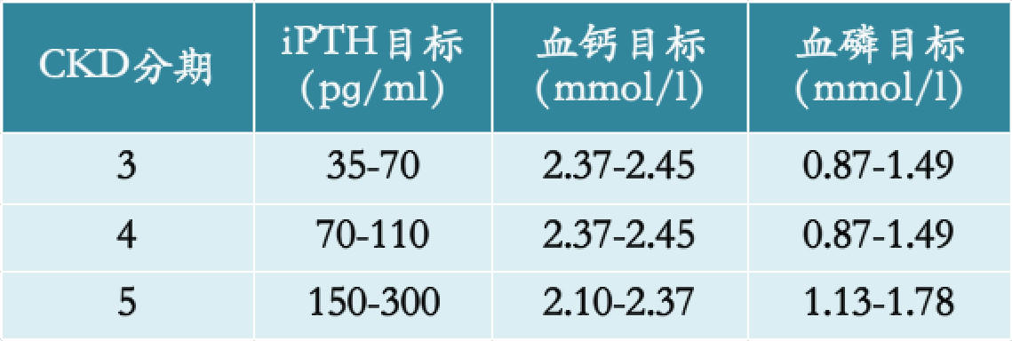CKD不同阶段,iPTH、血钙血磷控制的靶目标