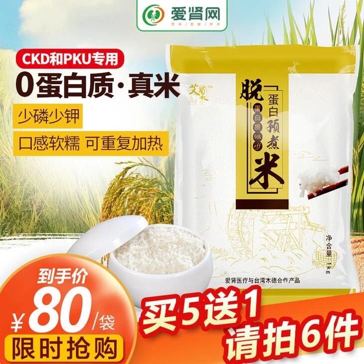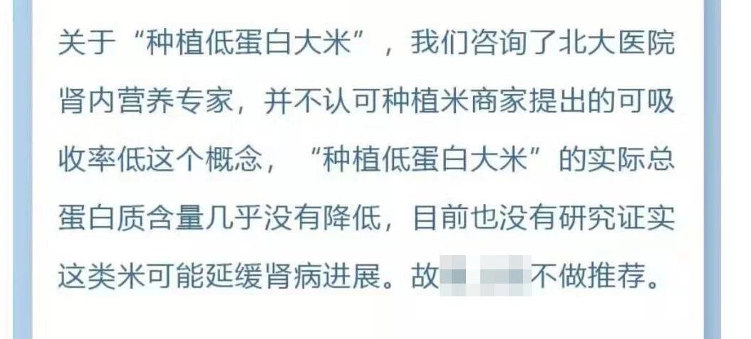 2019年7月18日,某平台出于商业利益刊发了关于低蛋白米的文章,爱肾网除了在售某平台提到的淀粉米、种植米、脱蛋白米之外,还包括适合糖尿病肾病,适合旅游出差,方便携带的等多种肾病低蛋白主食(除米、面外,还有调味品、零食、营养品等)。