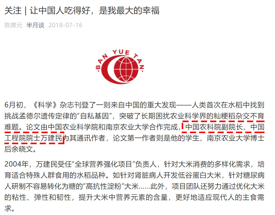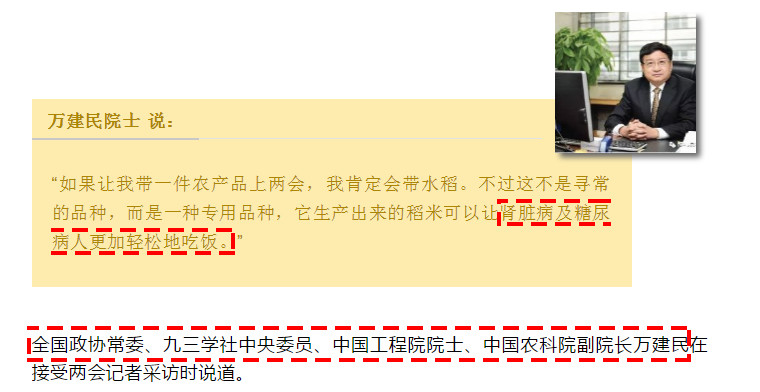 爱肾网找到了新华社主办的《半月谈》杂志,在2018年7月16日刊发的文章中,中国农科院副院长,中国工程院院士万建民院士也一直致力于适合肾病病人食用的低谷蛋白大米的研发和生产。
