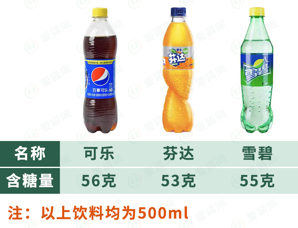 换句话来说,一天喝一瓶可乐摄入的糖就超标了!