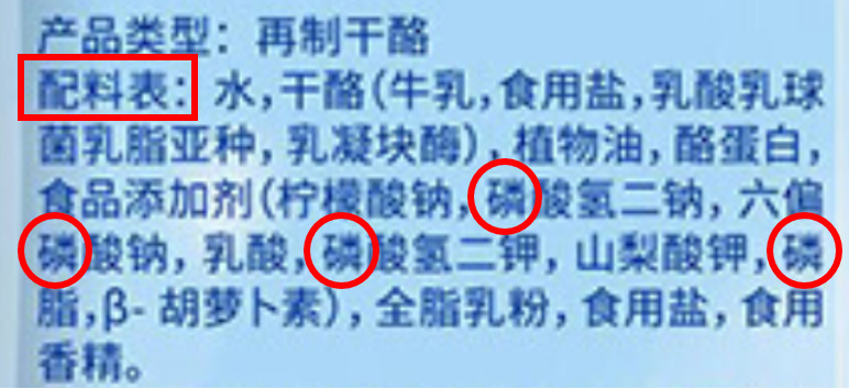 大家可以在食品包装上,找到“食品配料”中的成分,如果看到含「磷」的名字,就需要提高警惕,尽量避免购买和食用了。