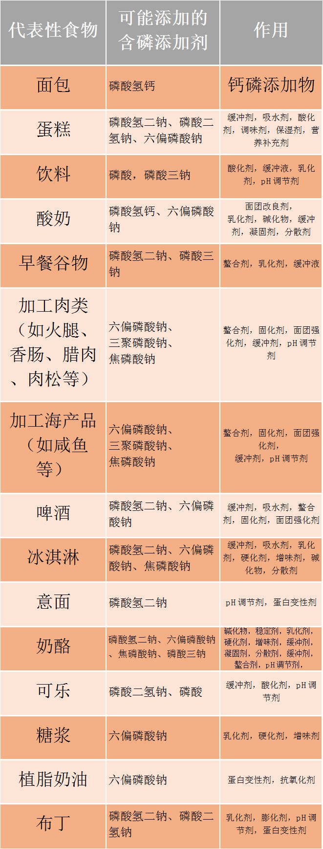 上表中没有提到的食物,也可能添加含磷添加剂。