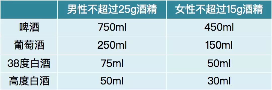 而英国剑桥大学在《柳叶刀》发布的一项研究成果称,适量饮酒可能有益健康,但每周摄入酒精超过100克,可能增加早逝风险。所以,无论男女每天饮酒不超过15g为宜。