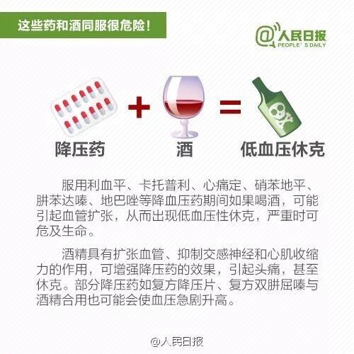 服用降压药(包括利血平、卡托普利、硝苯地平等)的朋友,如果饮酒,可能引起血管舒张,导致低血压,甚至休克、危及生命。