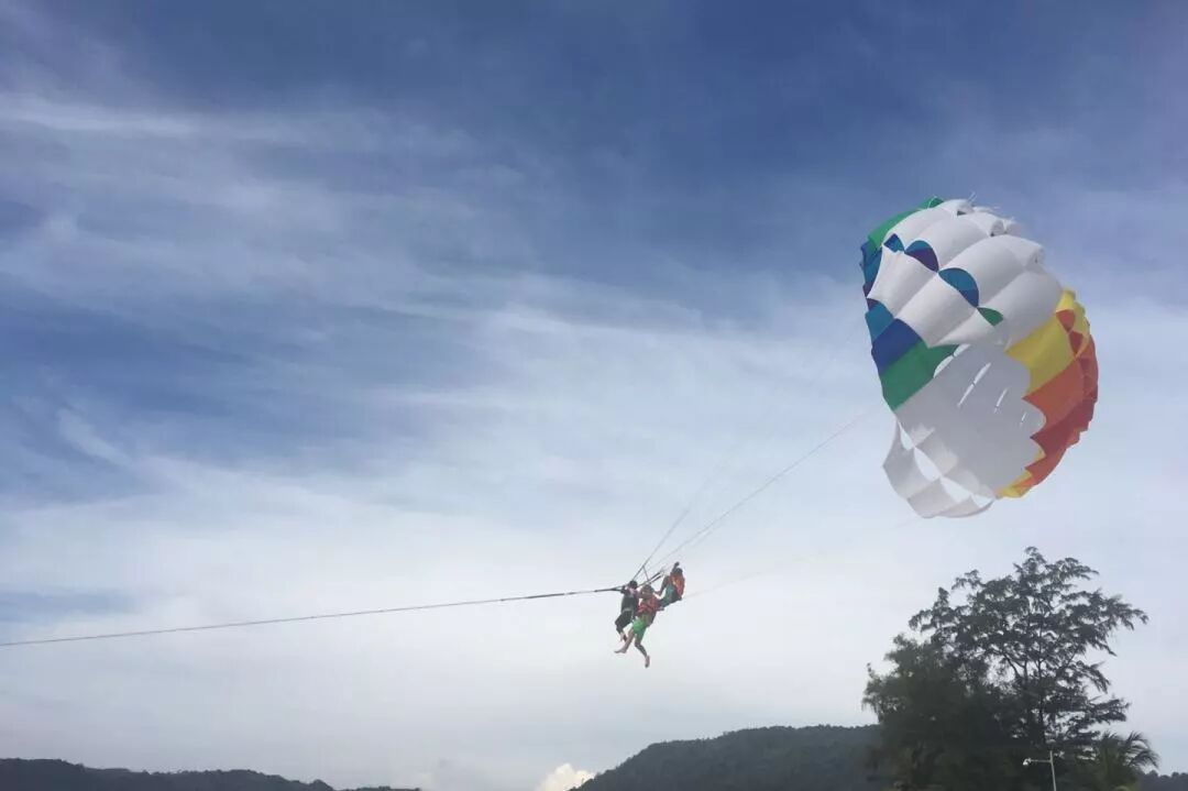 三亚大东海沙滩。我胆子小,在沙滩上乖乖坐着看别人玩也挺刺激。