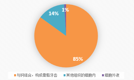 其中85%的磷与钙结合,构成骨骼牙齿,14%在其他组织的细胞内,另外1%存在于细胞外液,极少量在血浆1。