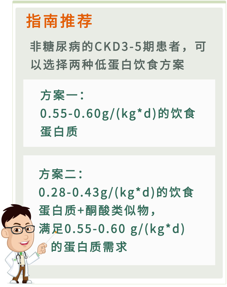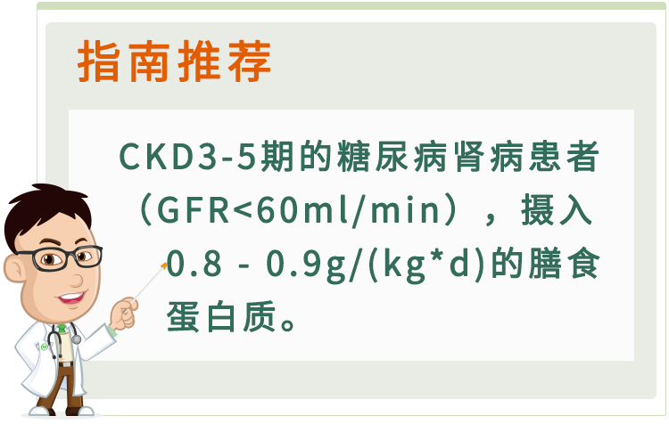 在代谢稳定的CKD3-5期的成年患者(GFR<60 ml/min)中,低蛋白饮食可以降低肾衰和死亡的风险,并改善生活质量。