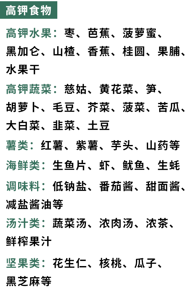 而钾主要来源于食物,想要维持血钾稳定,控制饮食永远是最重要的一步。