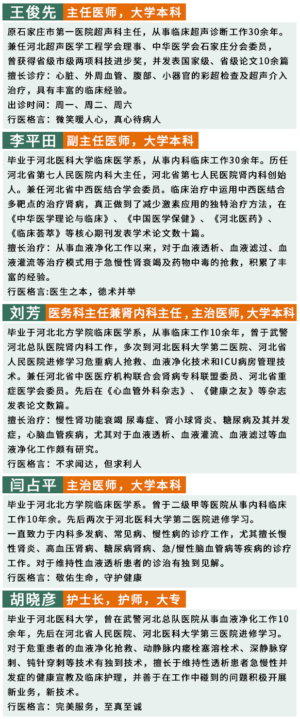中心拥有德国贝朗血液透析机、连续性血液净化机及德国费森尤斯4008S血液透析滤过机;达到美国AAMI、国际标准ISO13959和我国医药行业标准YY0572-2015等双极反渗超纯水水处理一套等。