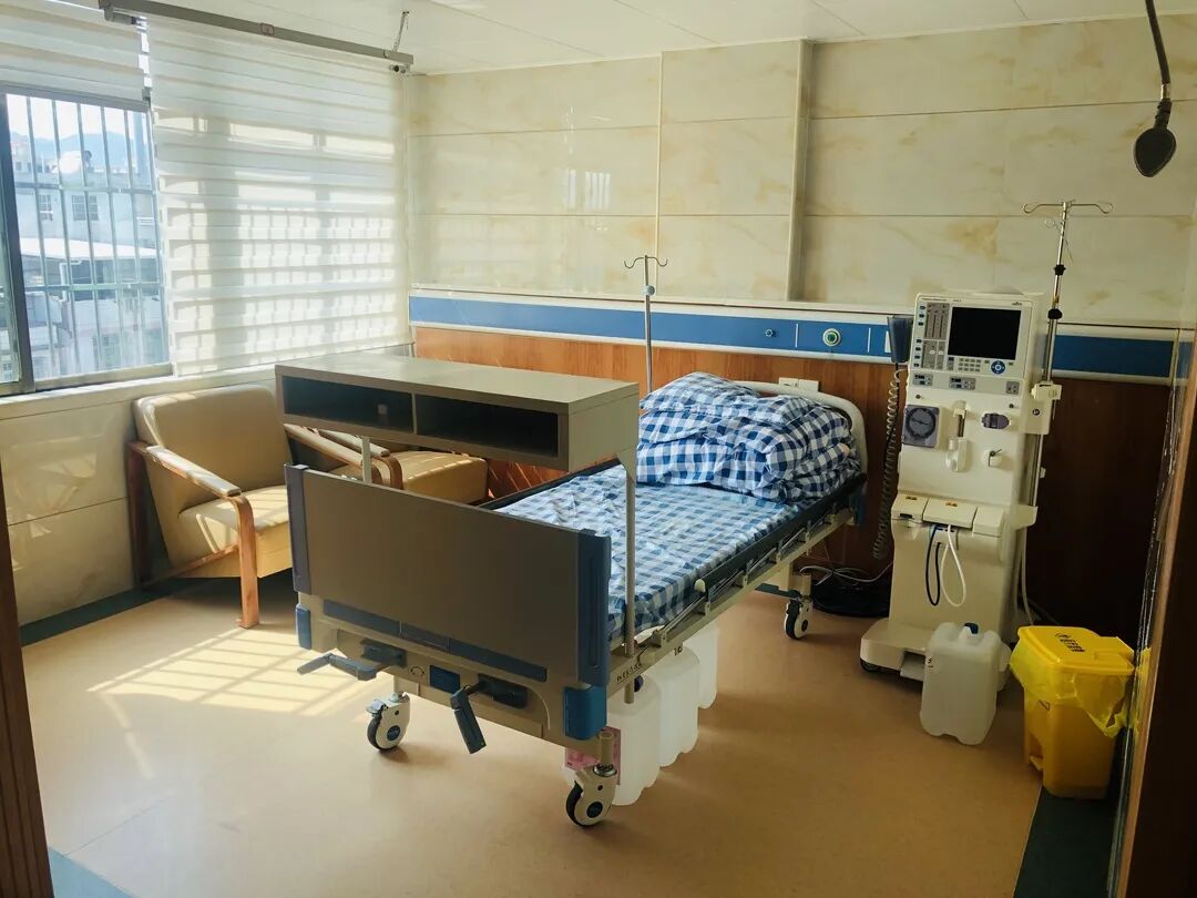 本中心配有德国劳铒水处理系统,德国费森尤斯、贝朗血液透析机及血液透析滤过机等一批先进的透析设备。每个透析单元配有中心供氧、中心负压吸引装置,可承担患者的常规透析治疗和抢救任务。