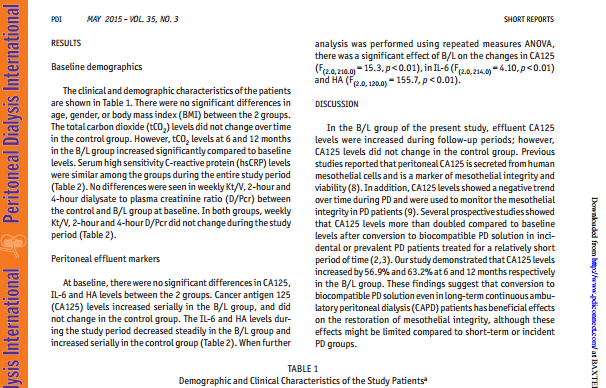长期CAPD患者转换成中性碳酸氢盐/乳酸缓冲PD溶液是否有益?单中心前瞻性研究(英文)