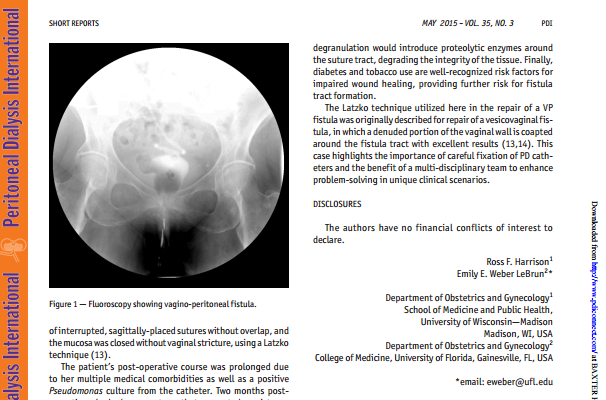 腹膜透析导管阴道套固定术治疗阴道腹膜瘘一例(英文)