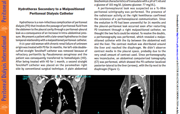 继发于错位腹膜透析导管的胸腔积液(英文)