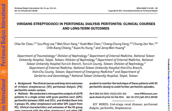 腹膜透析腹膜炎的病毒性腹泻:临床课程和长期结果(英文)